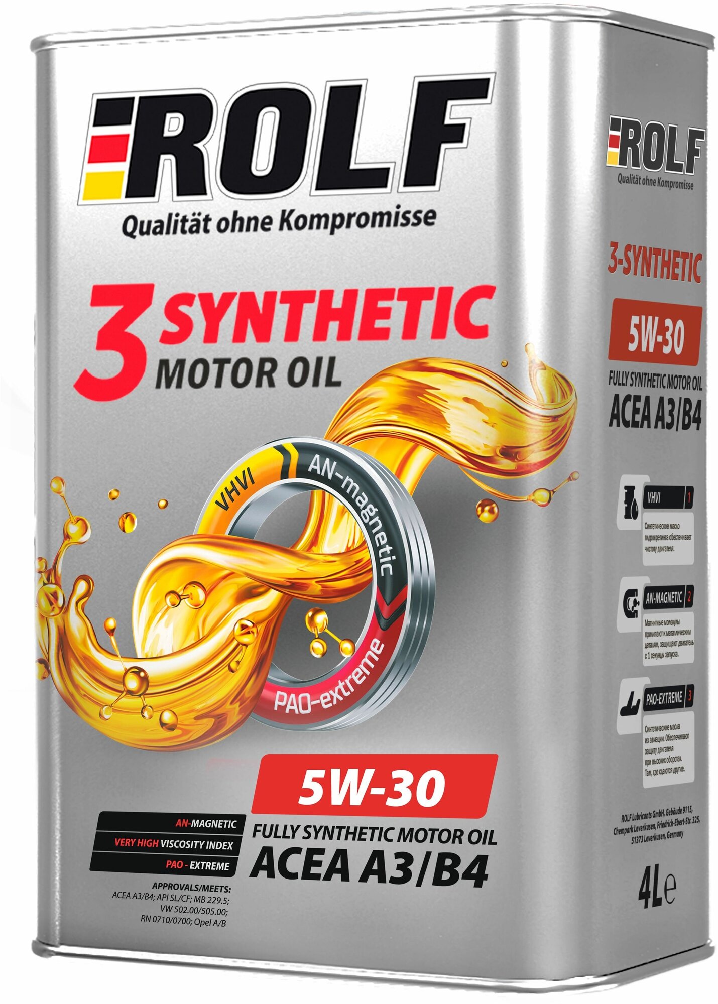 Лучшие цены. ROLF 3-SYNTHETIC 5W-30 – уникальное по своему составу синтетическое моторное масло премиального качества. Сочетание трех синтетических базовых масел и передового пакета присадок обеспечивает превосходную защиту от износа, особенно в термонагруженных зонах, улучшенную термоокислительную стабильность для предотвращения накопления отложений и образования лаков на поверхностях деталей двигателя. Магазины в вашем городе.