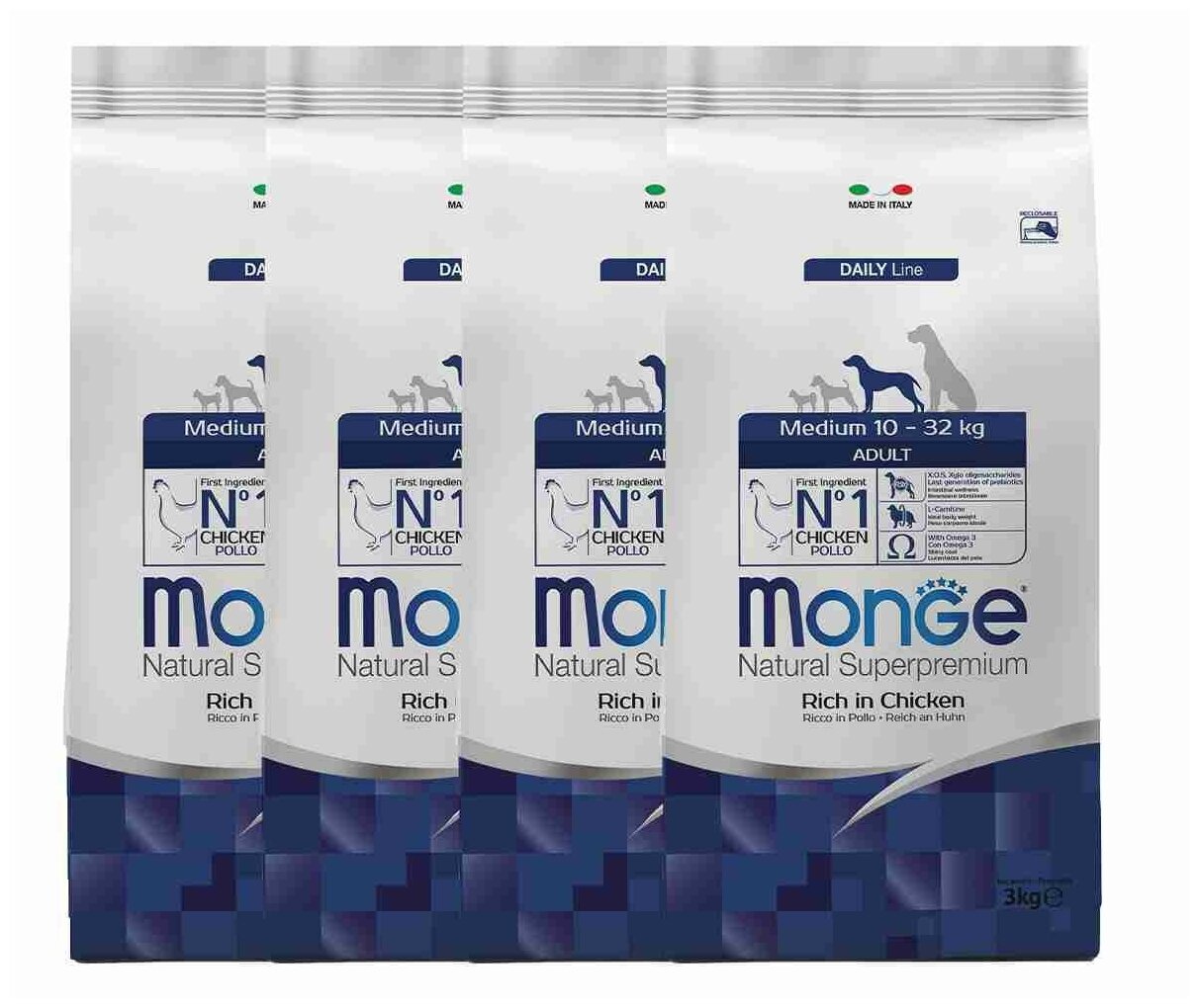 Сухой корм для собак Monge Daily Line, курица 4 шт. х 3 кг (для средних пород)