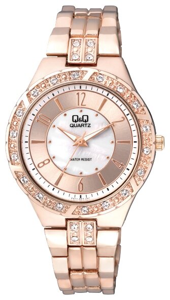 Лучшие цены. Женские стильные часы на стальном браслете, украшены кристаллами Swarovski. Эти часы для женщин – энергичных и рисковых натур. Модель: Q&Q F511-003 Наручные часы женские Механизм: Кварцевый Корпус: Стальной с PVD покрытием Циферблат: Розовый Стекло: Минеральное Браслет: Стальной с PVD покрытием Водозащита: 30 м Камень-вставка: Корпус украшен кристаллами Swarovski Размер: 38 мм. Магазины в вашем городе.