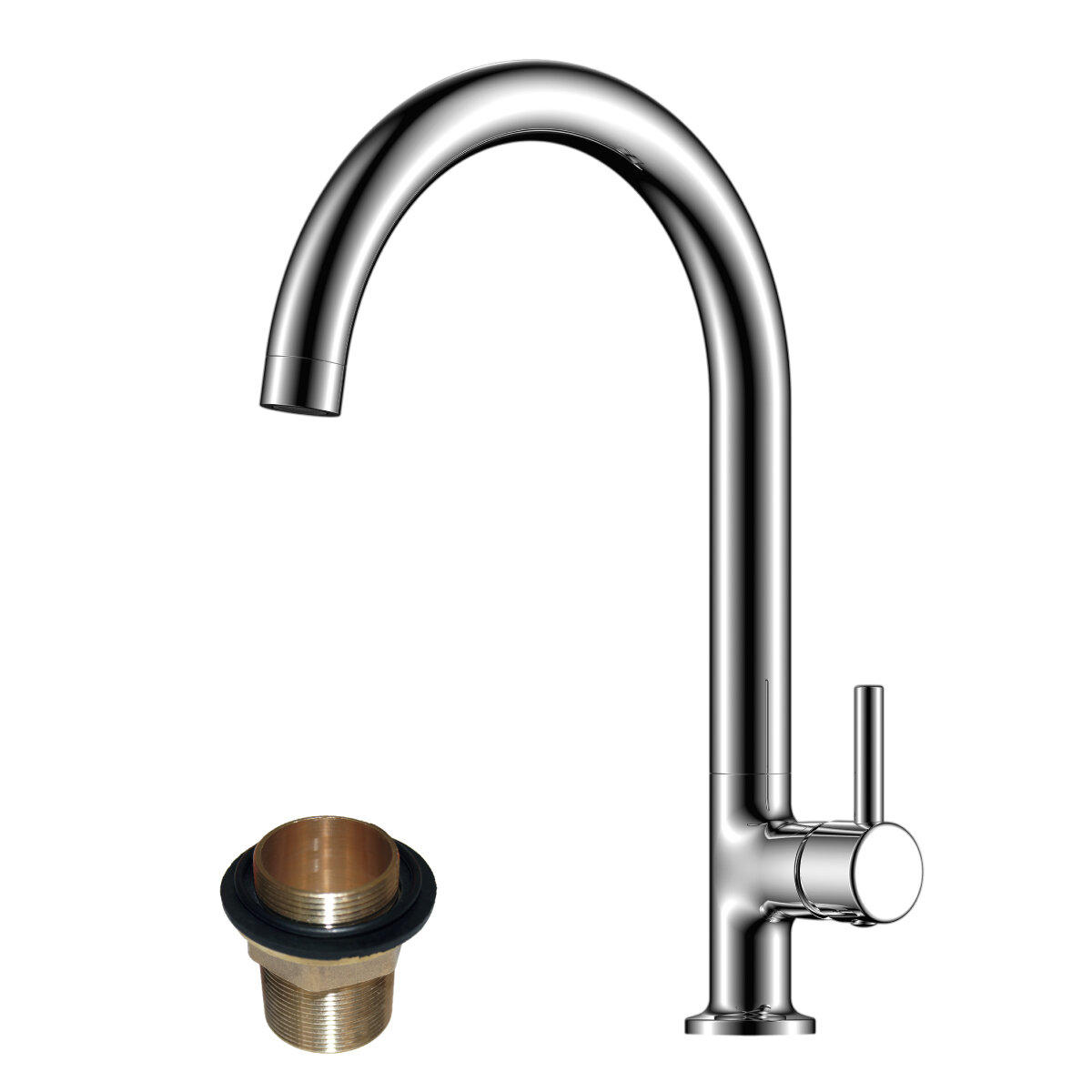 Лучшие цены. Универсальная и практичная модель, идеальная для современной кухни. Латунное изделие отличается прочностью и долговечностью. Хромовое покрытие защищает от воздействия влаги и механических повреждений. Эргономичный рычаг управления существенно упрощает регулировку температуры и напора воды. Поворотный излив увеличивает полезную площадь раковины, делая удобным мытье посуды и продуктов. Гибкая подводка 35 см – 2 шт - в комплекте. Для установки используется резьбовое основание смесителя (в комплекте). Магазины в вашем городе.
