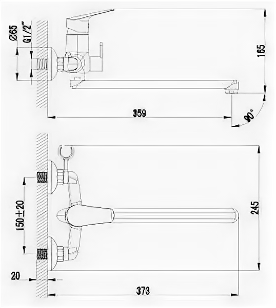 | Глубина струи | 373 мм / излив — 300 мм / |
