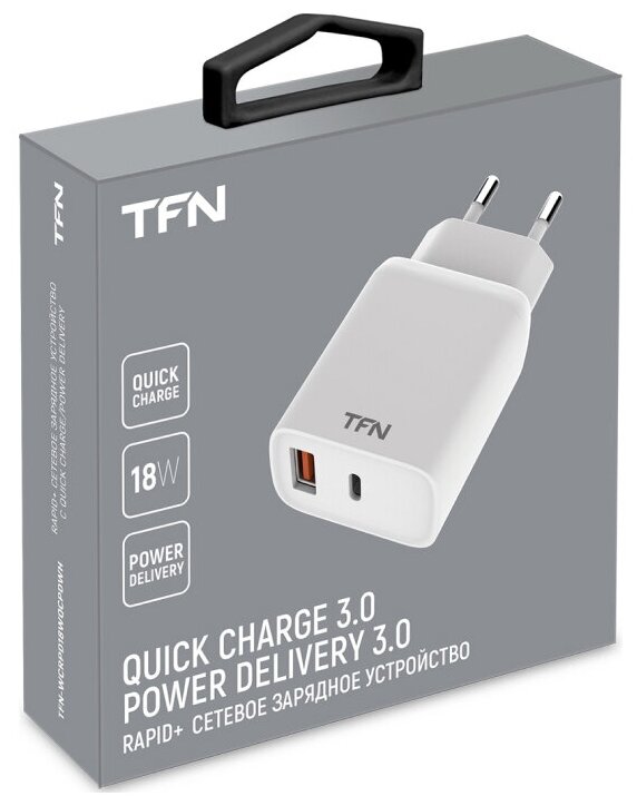 Зарядное устройство Сетевое зарядное устройство TFN RAPID + 18ВТ, 3A, USB, USB-C, быстрая зарядка (TFN-WCRPD18) белый
