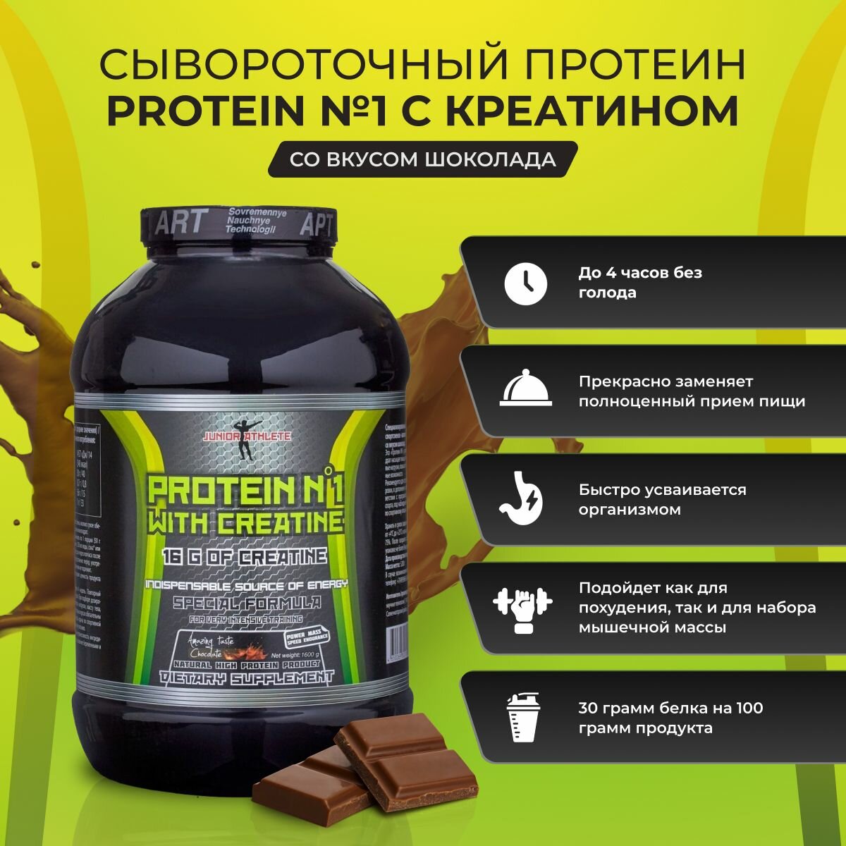 Протеин Junior Athlete №1 с креатином, шоколад, спортивное питание, 3,2 кг