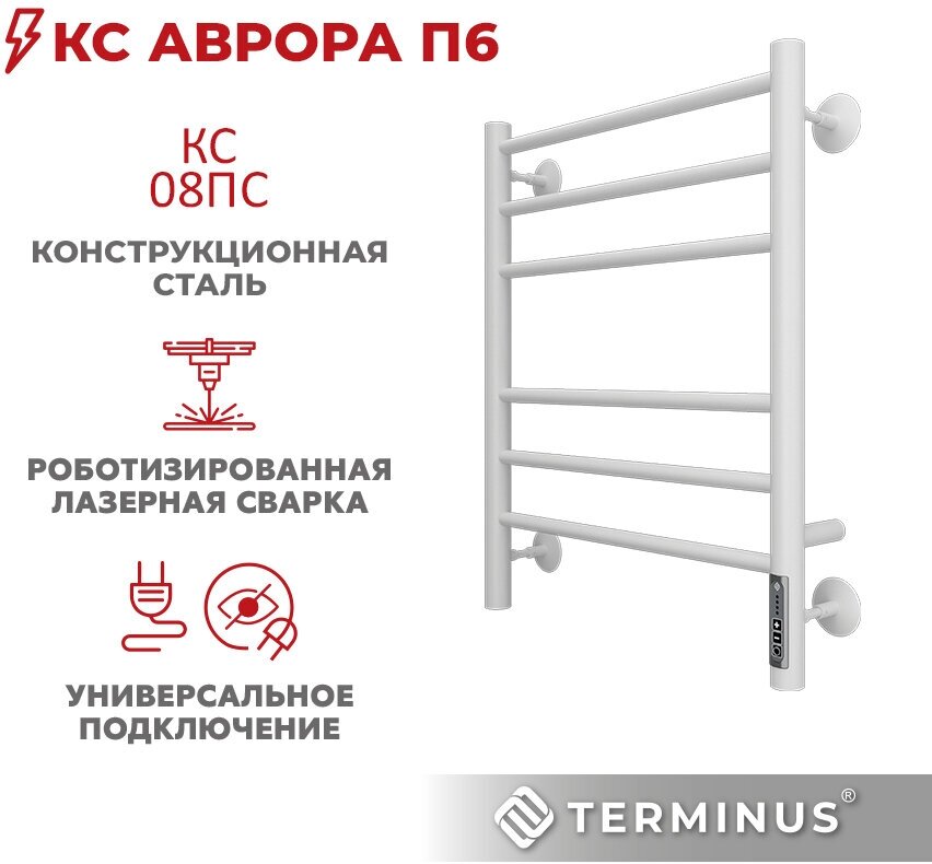 Полотенцесушитель Терминус КС Аврора П6 450/600 электрический, цвет белый матовый
