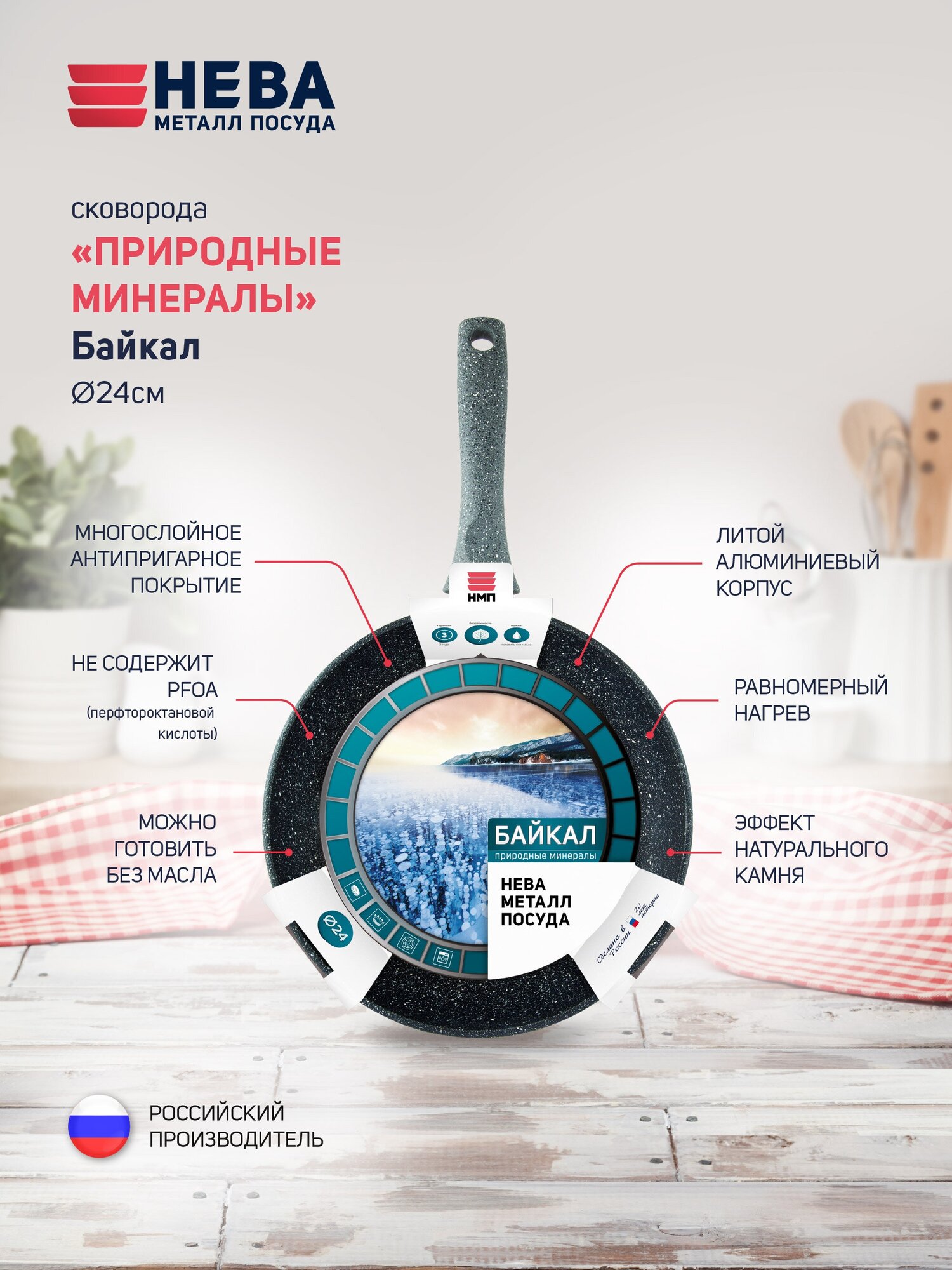 Сковорода Нева Металл Посуда НМП "Природные минералы" линия "Байкал" арт. 2524, 24 см
