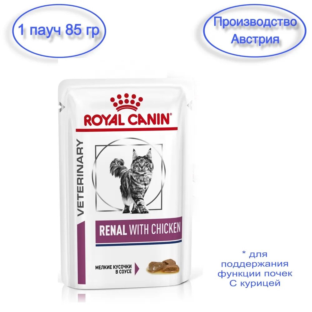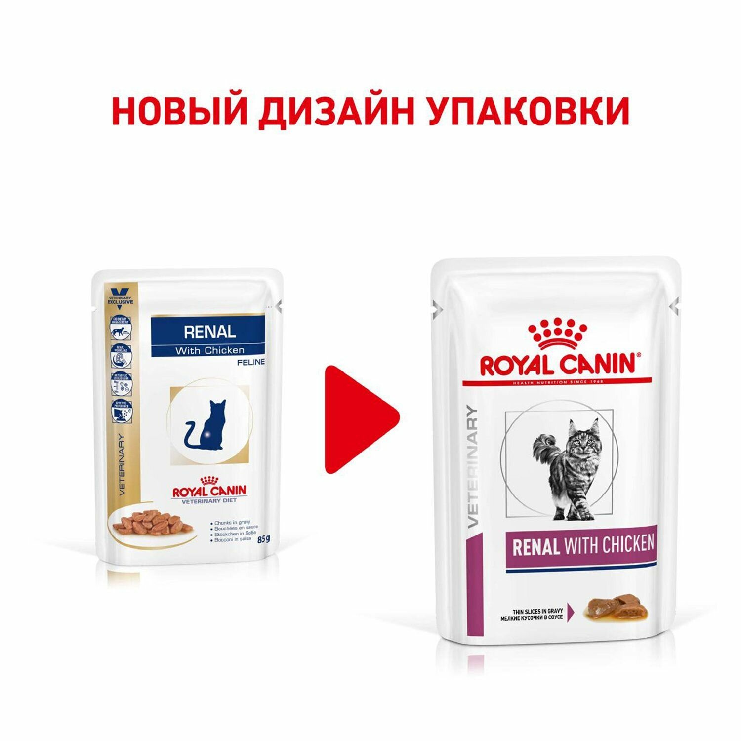 Влажный корм (пауч) для кошек Royal Canin Renal при заболеваниях почек с курицей в соусе, упаковка 12 шт*85 г