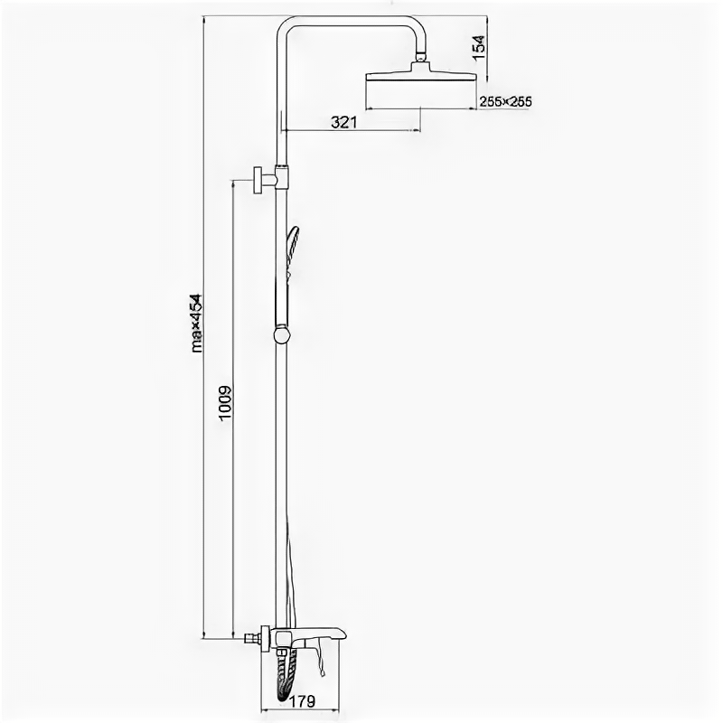 | Комплектация | ручной душ (душевая лейка) / верхний душ (тропический) / смеситель / стойка / штанга / душевой шланг / крепление ручного душа |