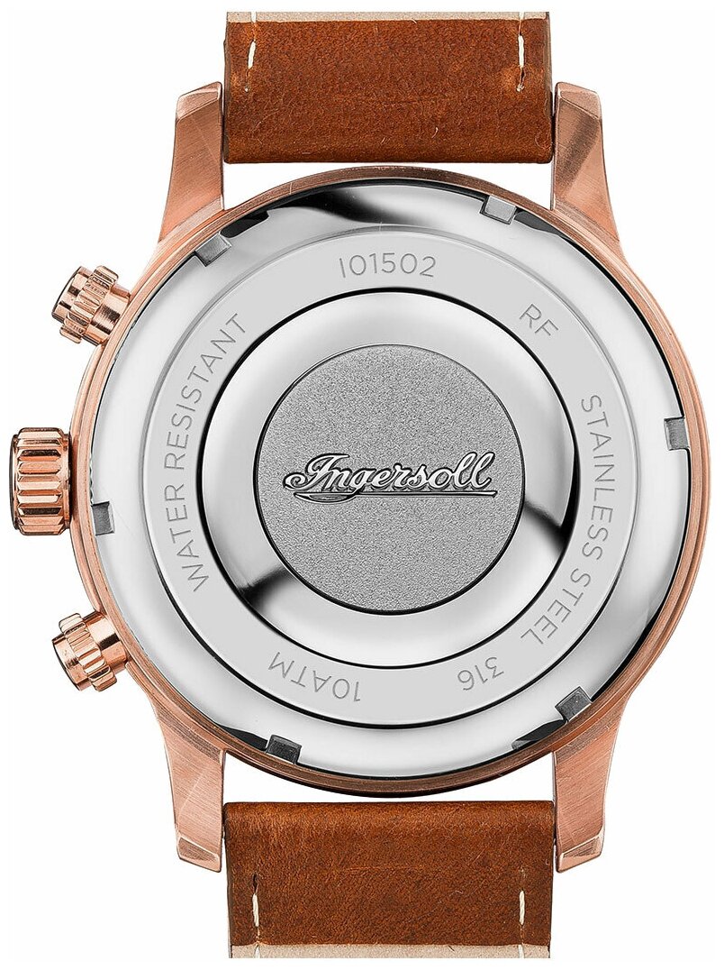 Лучшие цены. Ingersoll I01502 Мужские наручные часы Ingersoll I01502. Общие характеристики. Тип: кварцевые. Назначение: мужские. Способ отображения времени: аналоговый (стрелки). Цифры: арабские. Источник энергии: от батарейки. Конструкция. Водонепроницаемые: да. Класс водонепроницаемости: WR100 (плавание, ныряние без акваланга). Материал корпуса: нерж. сталь. Материал браслета/ремешка: кожа. Стекло: минеральное. Габариты: 47 мм. Особенности. Точность хода: +/- 0.67 с/мес. Хронограф: есть. Отображение даты: число. Магазины в вашем городе.