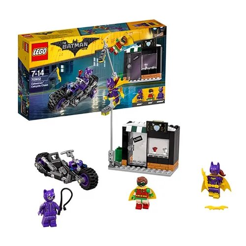 Лучшие цены. -В наборе представлен ювелирный магазин, в витрине которого два драгоценных камня. На подвижной двери магазина табличка Closed. Сбоку от ювелирного - мусорка, табличка Help и фонарь. У фонаря подвижный столб, который можно повалить. -Мотоцикл женщины-кошки выполнен в серо-черном цвете с фиолетовыми элементами. У него подвижные колеса и руль. -Минифигурка женщины-кошки одета в фиолетовый костюм с маской и поясом. В руках у неё хлыст. У женщины-кошки 2 выражения лица: злое и нейтральное. Магазины в вашем городе.