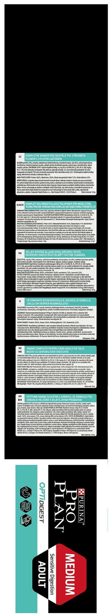 PRO PLAN ADULT DOG MEDIUM SENSITIVE DIGESTION для взрослых собак средних пород с чувствительным пищеварением с ягненком и рисом (14 кг)