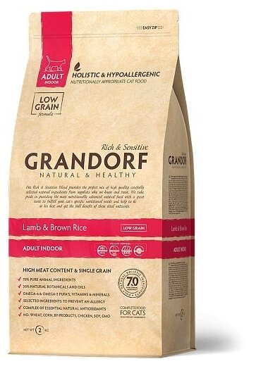 Сухой корм для кошек живущих в помещении Grandorf для живущих в помещении, гипоаллергенный, с белой рыбой, с бурым рисом 2 кг