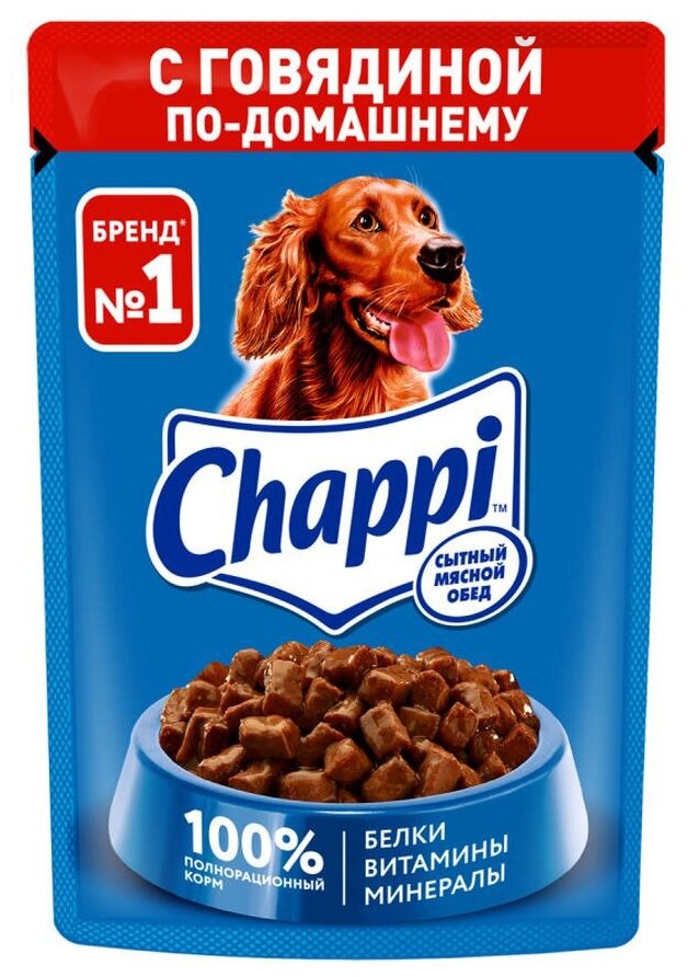 CHAPPI для взрослых собак сытный мясной обед с говядиной по-домашнему пауч (85 гр х 28 шт)
