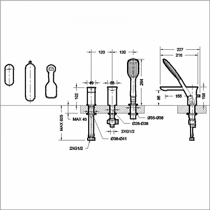 Смеситель Смеситель на борт ванны Bravat Gina F565104C-2-ENG Хром