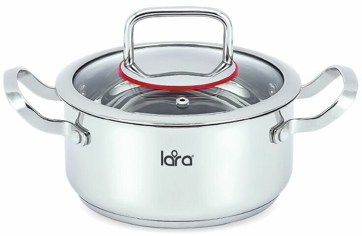 Lara Кастрюля (нерж) Prima 16x7.5см, 1.5л, литые ручки, капсул индукц дно, стекл. крышка LR02-500