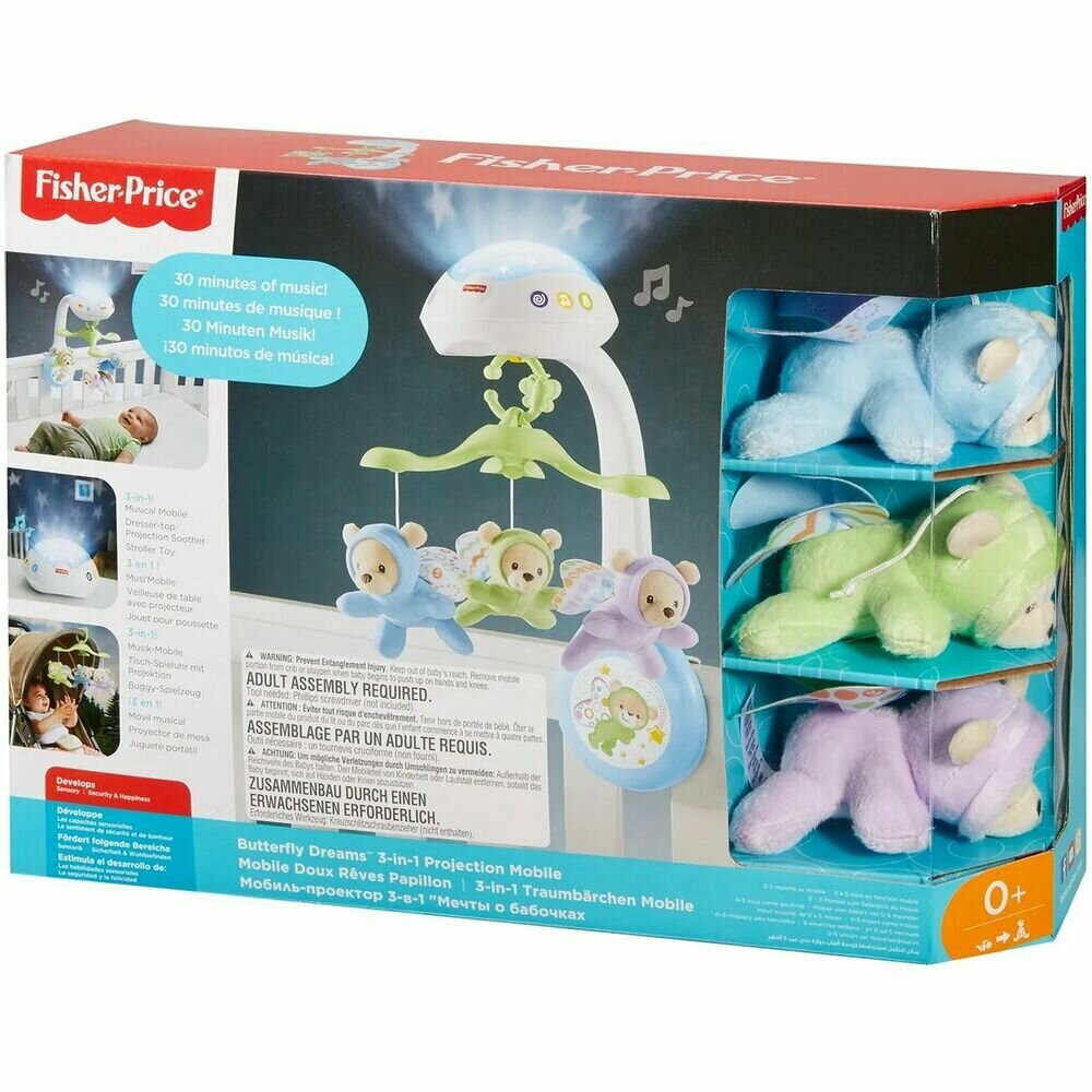 Музыкальная игрушка Mattel Fisher-Price Карусель Мобиль на кроватку Мечты о бабочках (обновленный)