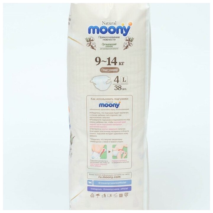 Подгузники MOONY ORGANIC подгузники, L (9-14 кг), 38 шт. NEW