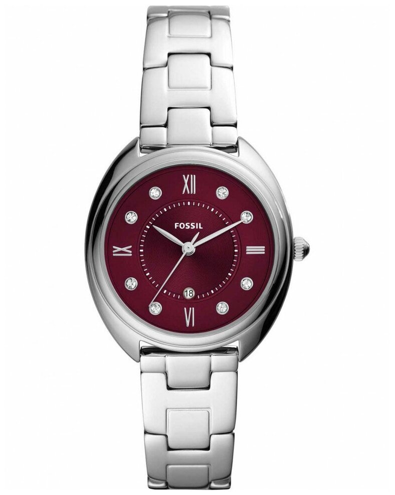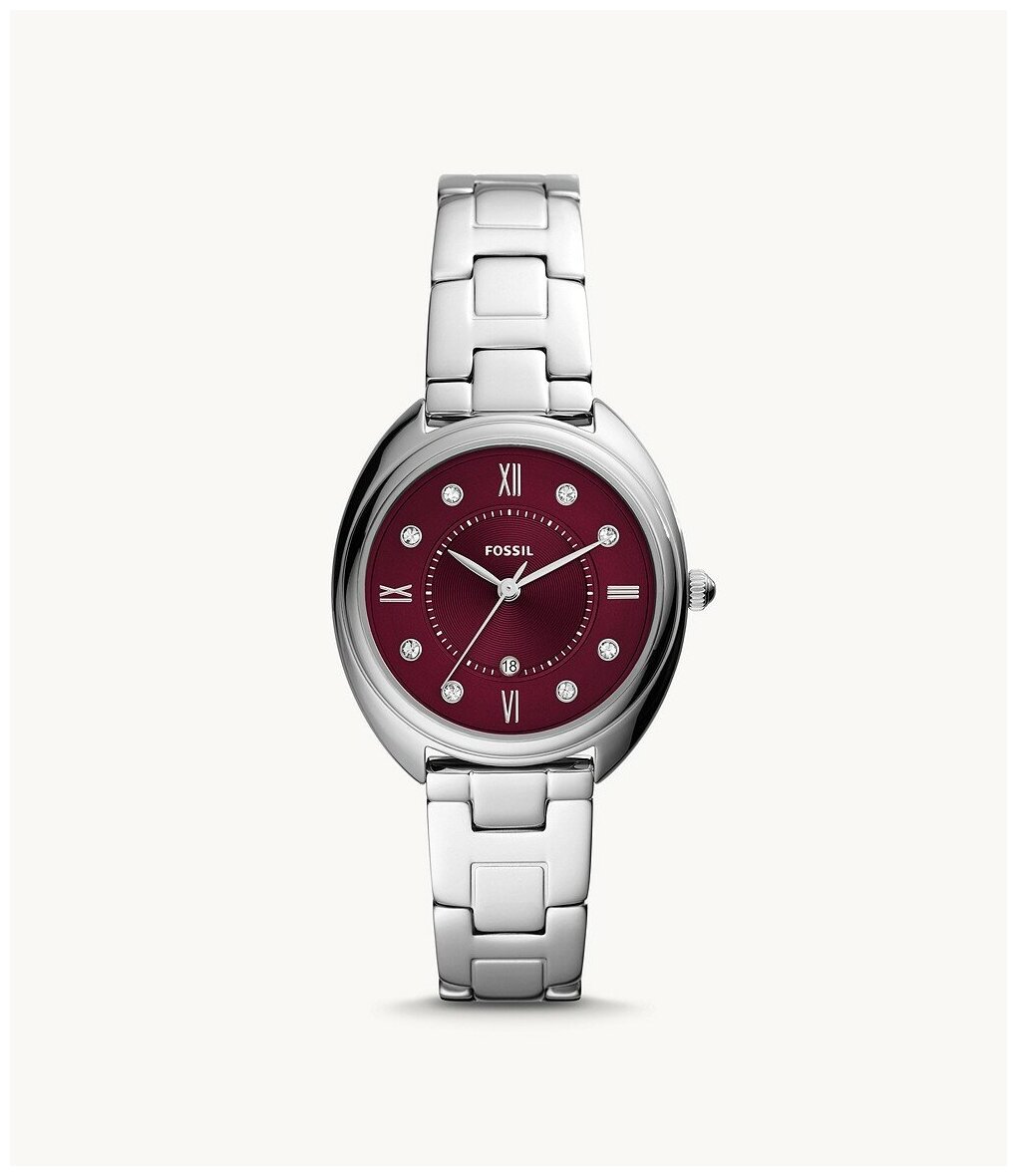 Лучшие цены. Женские кварцевые часы из серии Gabby. Круглый корпус из нержавеющей стали. Бордовый циферблат украшен кристаллами. Минеральное стекло. Водозащита 50 м. Стальной браслет. Система быстрой замены. Раскладывающаяся застежка. • Точный кварцевый механизм. Тип батарейки SR621SW. • Центральные часовая, минутная и секундная стрелки. • Точность хода не хуже от -10 до +20 сек./ месяц. • Индикатор даты в положении 6 часов. • Минеральное стекло устойчивое к возникновению царапин. Магазины в вашем городе.