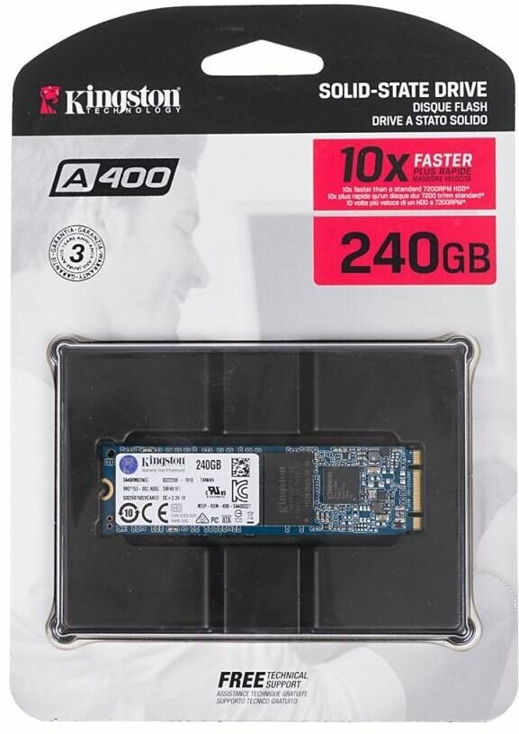 240 ГБ SSD M.2 накопитель KINGSTON A400 (SA400M8/240G) - SATA III, чтение - 500 Мбайт/сек, запись - 350 Мбайт/сек, TLC 2D NAND