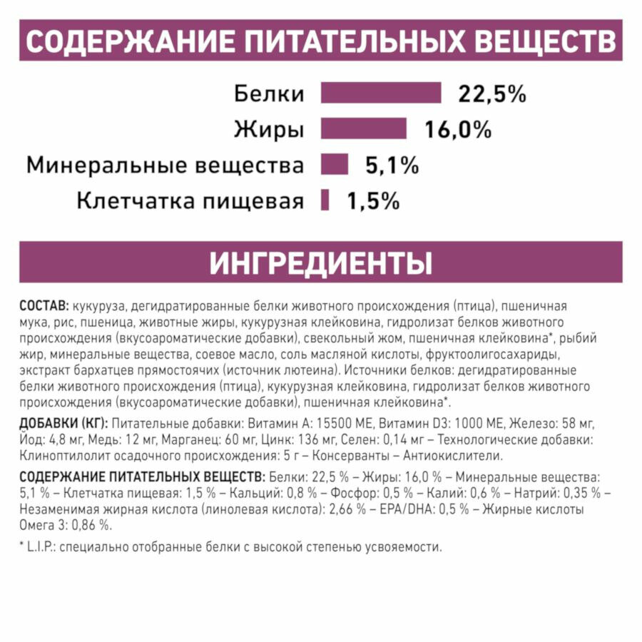 | Ингредиенты | рис, злаки, мясо птицы, протеины, овощи, минералы, витамины |