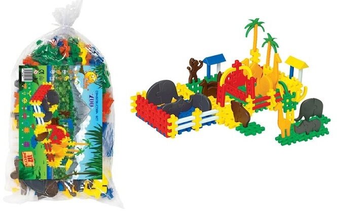 Лучшие цены. Устроить целый зоопарк с разнообразными экзотическими животными, пальмами, вольерами и домиками для животных можно с помощью этого сюжетного конструктора. В набор входят слоны, антилопы, верблюды, бегемоты, медведи, жирафы, обезьяны, львы и носороги. Животные собираются по принципу паззла из 2 – 3 частей. Вольеры и домики можно строить по образцу или собственному проекту. В набор входит 15 видов деталей. Магазины в вашем городе.
