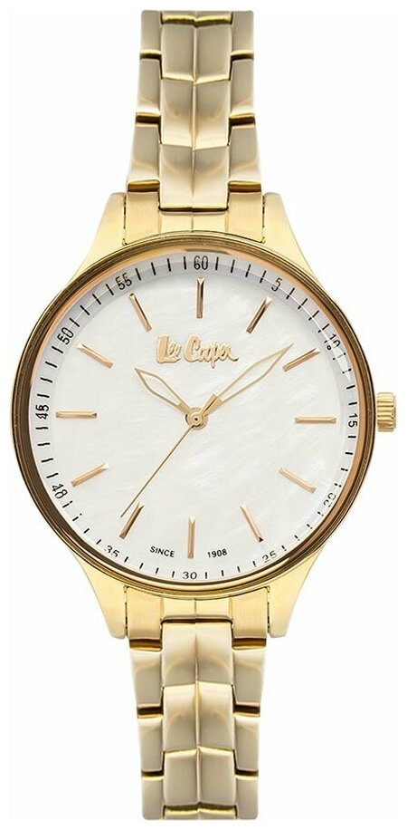 Лучшие цены. Женские часы Lee Cooper с перламутровым циферблатом. Гарантия 2 года. Комплектация: Часы, фирменная упаковка, инструкция на русском языке, заполненный гарантийный талон. Бренд Lee Cooper Пол Женские Страна Англия Вид механизма Кварцевые часы Тип браслета/ремешка Металлический Корпус Металл Стекло Минеральное Водозащита WR 30 Цвет браслета/ремешка Золотой Подсветка Стрелок Диаметр 36 мм. Магазины в вашем городе.