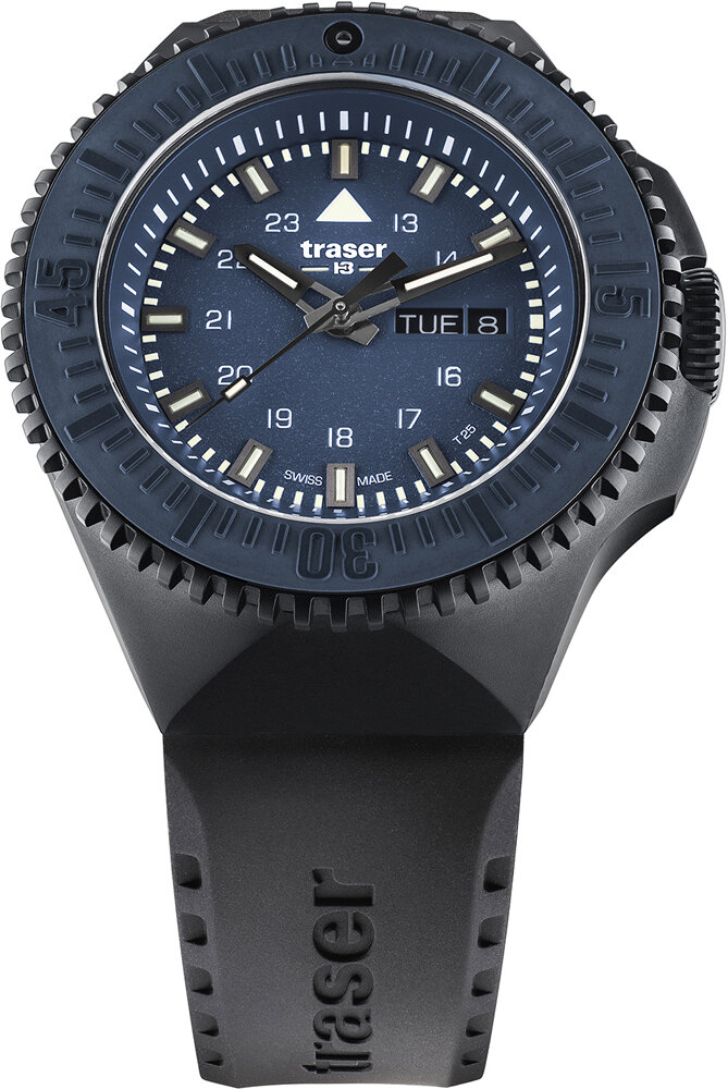Лучшие цены. Пол: мужские. Тип часов: спорт. Механизм: кварцевые. Форма корпуса: круглые. Материал корпуса: нержавеющая сталь. Цвет корпуса: черный. Покрытие корпуса: полное PVD черного цвета. Водозащита: 200м (20 АТМ). Стекло: сапфировое. Циферблат: со стрелками. Цвет циферблата: синий. Цифры/метки: арабские цифры; штрихи. Календарь: дата и день недели. Подсветка: тритиевая подсветка/тригалайт. Браслет/ремешок: каучуковый ремешок. Цвет браслета/ремешка: черный. Свойства/Функции: завинчивающаяся заводная головка. Магазины в вашем городе.