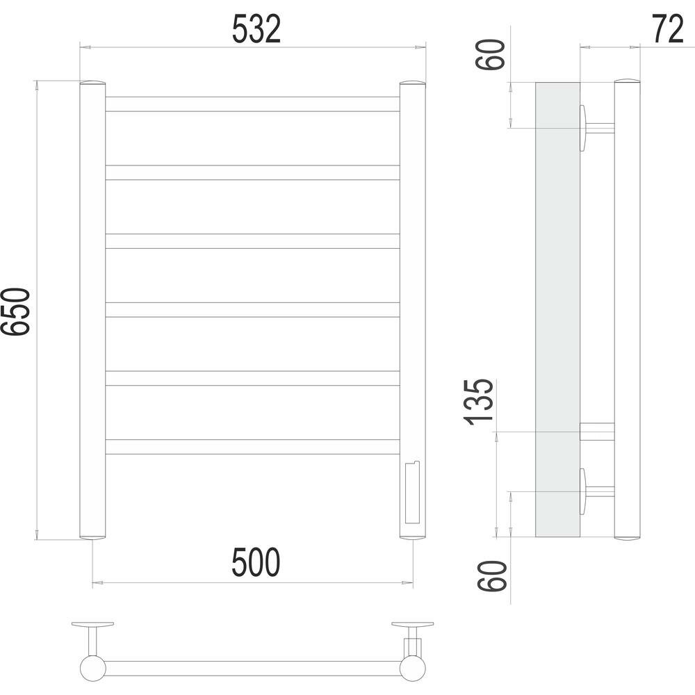 "Аврора" (скрытая проводка) электрический полотенцесушитель TERMINUS (532 мм / 650 мм / 500 мм)