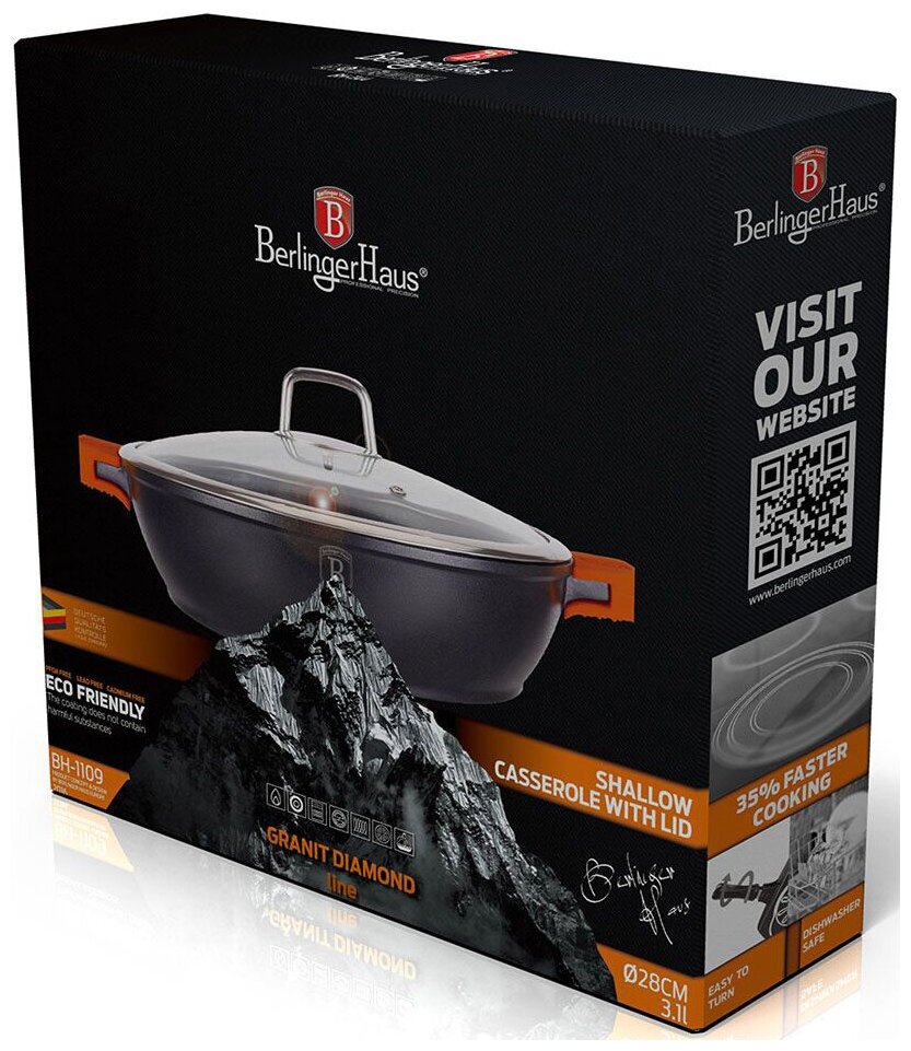 Сковородки Сотейник с крышкой BERLINGER HAUS BH-1109 Granit Diamond Line 28см