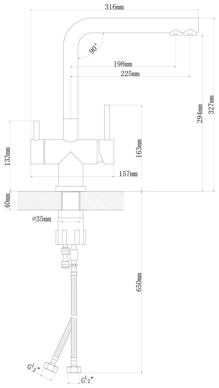 Лучшие цены. Cмеситель для кухни Поворотный излив Керамический картридж Гибкая подводка Двойной излив для подачи чистой питьевой воды Фильтрованная вода подается по отдельной трубке и не смешивается с водопроводной водой. Магазины в вашем городе.