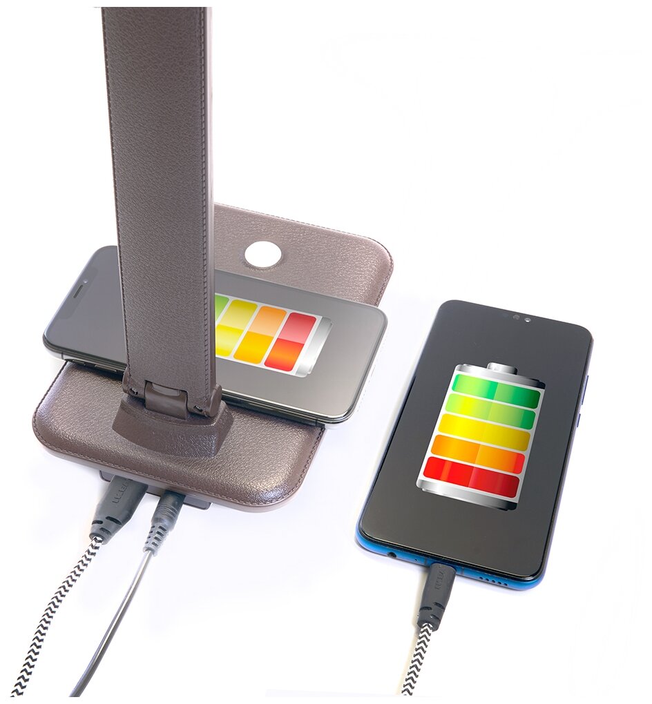 Настольный складной диммируемый светильник FERON 10W, 3000-6000К, беспроводная зарядка и USB порт, коричневый DE1728 41451