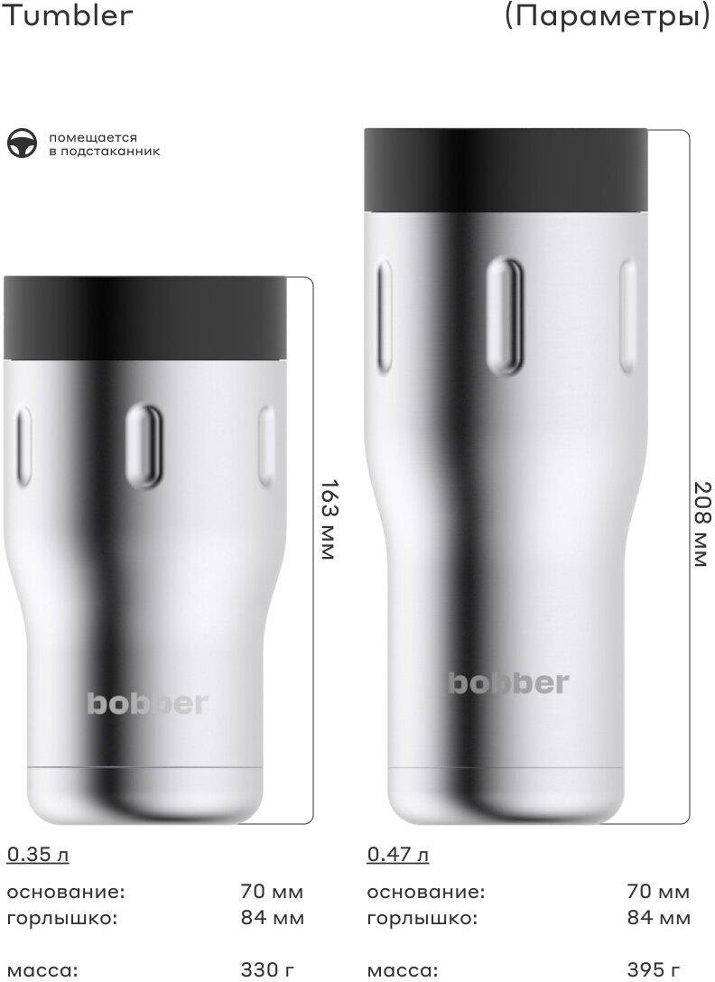 Термос Термокружка Bobber Tumbler-470, 0.47л, стальной матовый/черный (TUMBLER-470/MATTE)