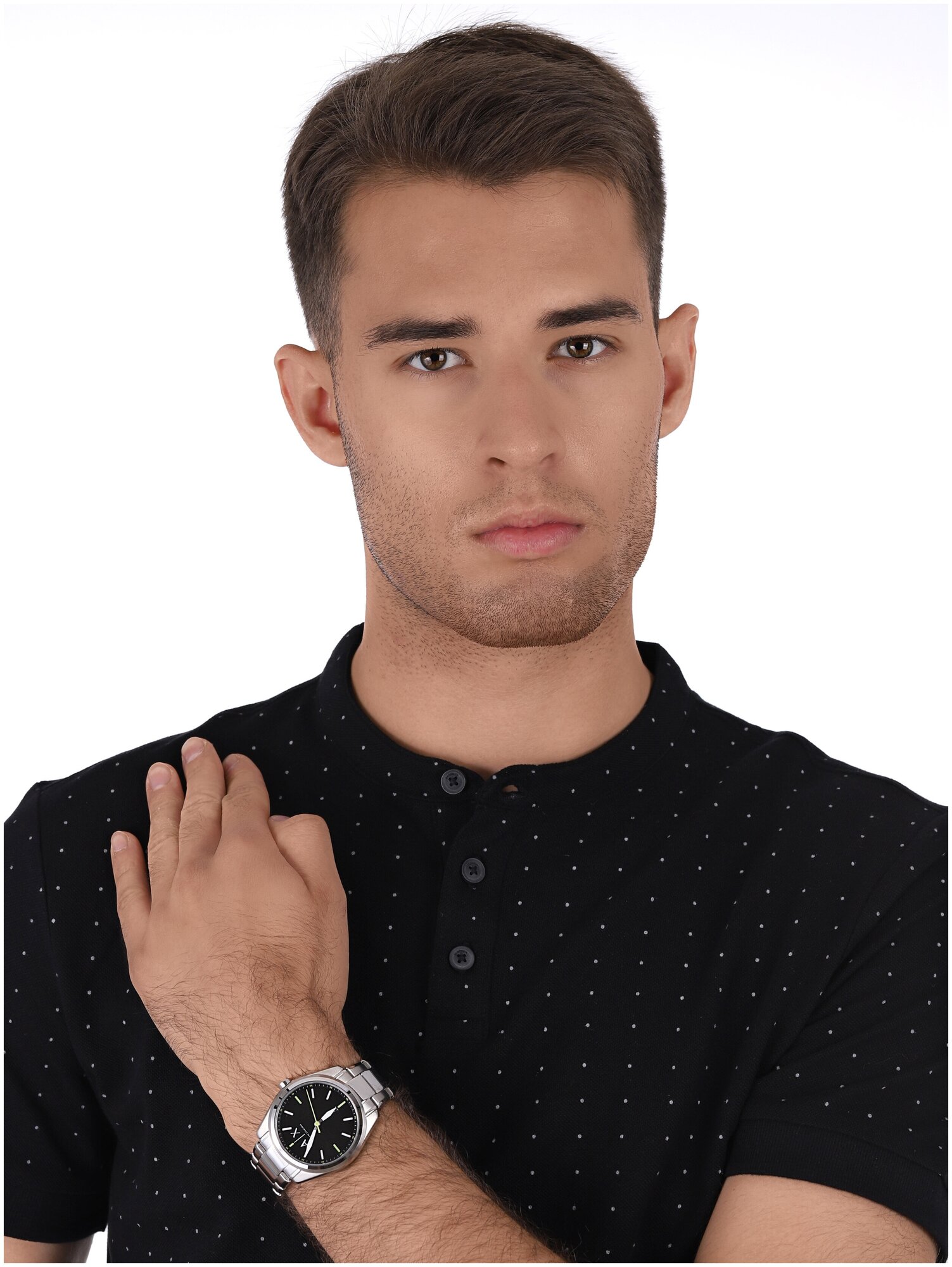 Лучшие цены. Мужские кварцевые часы из серии Giacomo. Круглый корпус из нержавеющей стали. Черный циферблат с логотипом бренда выполнен по технологии Sunray (солнечные лучи). Минеральное стекло. Водозащита 50 м. Стальной браслет с раскладывающейся застежкой. • Точный кварцевый механизм. • Центральные часовая, минутная и секундная стрелки. • Точность хода не хуже от -10 до +20 сек. в месяц. • Окошко даты в позиции 6 часов. • Минеральное стекло устойчивое к возникновению царапин. Магазины в вашем городе.