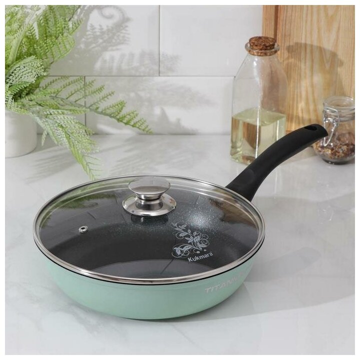 Сковорода 24см Kukmara Кукмара Стеклянная крышка Антипригарное покрытие Titanium pro (green) - стз2403