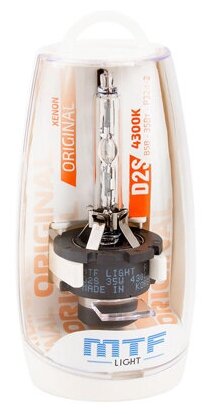 Лучшие цены. Ксеноновая лампа MTF light D2S Original 4300K - предназначена для штатной линзованной оптики автомобиля. Особенности: Международный сертификат качества ISO 9001:2008 Продукция соответствует европейскому стандарту ECE Сертификат соответствия техническим регламентам Сертификат соответствия ГОСТ Р Быстрый пуск в холодном и горячем состоянии. Высокая устойчивость к вибрации и механическим нагрузкам. Совместимость с электронными блоками управления автомобиля. Высокая помехозащищенность. Магазины в вашем городе.