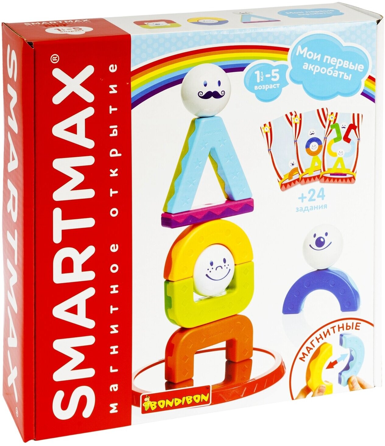 Лучшие цены. Магнитный конструктор МОИ первые акробаты от Bondibon - очень милый и обязательно понравится малышам. Ведь теперь они могут бесконечно экспериментировать и строить различные конструкции. А еще их ждет магнитное открытие от Smartmax! Ведь разноцветные детали конструктора - самые настоящие магниты с разными полюсами. Причем тёплые цвета имеют одну полярность, а холодные другую. Одни элементы можно соединить, а другие отталкиваются друг от друга. Магазины в вашем городе.