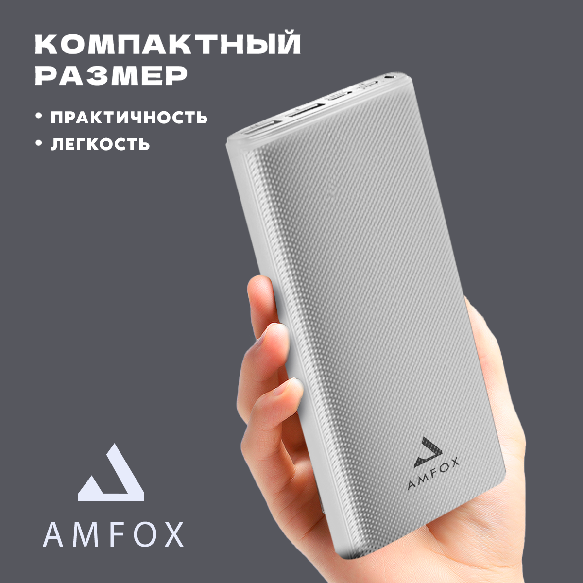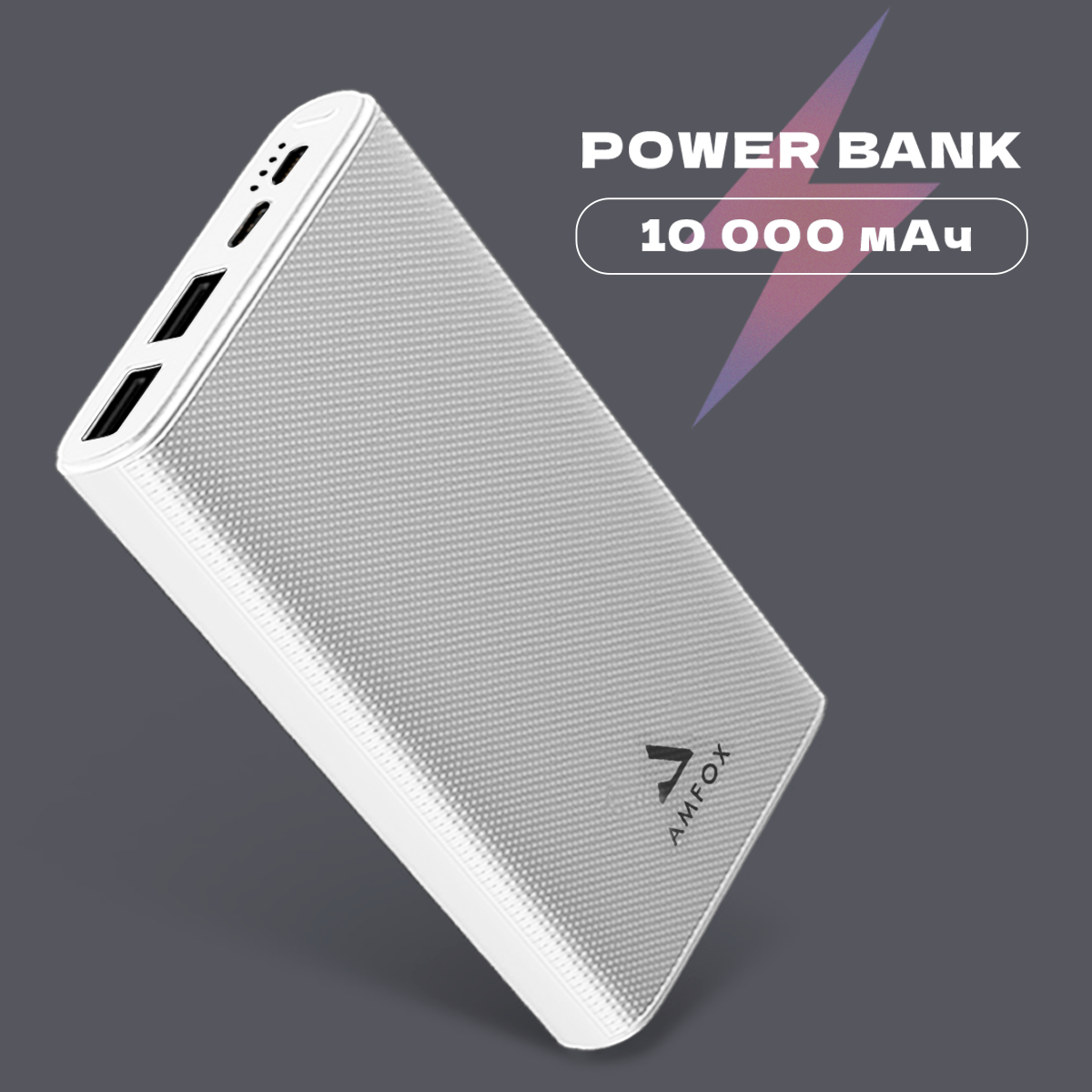 Powerbank ЗУ Power Bank Повербанк AMFOX APB510 10000 mAh, LiPol, 2.4A, USBx2, microUSB, Type-C, белое