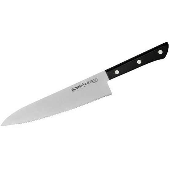 Кухонный нож Нож кухонный Шеф серрейтор Samura HARAKIRI SHR-0086B/K, черная рукоять, 208 мм