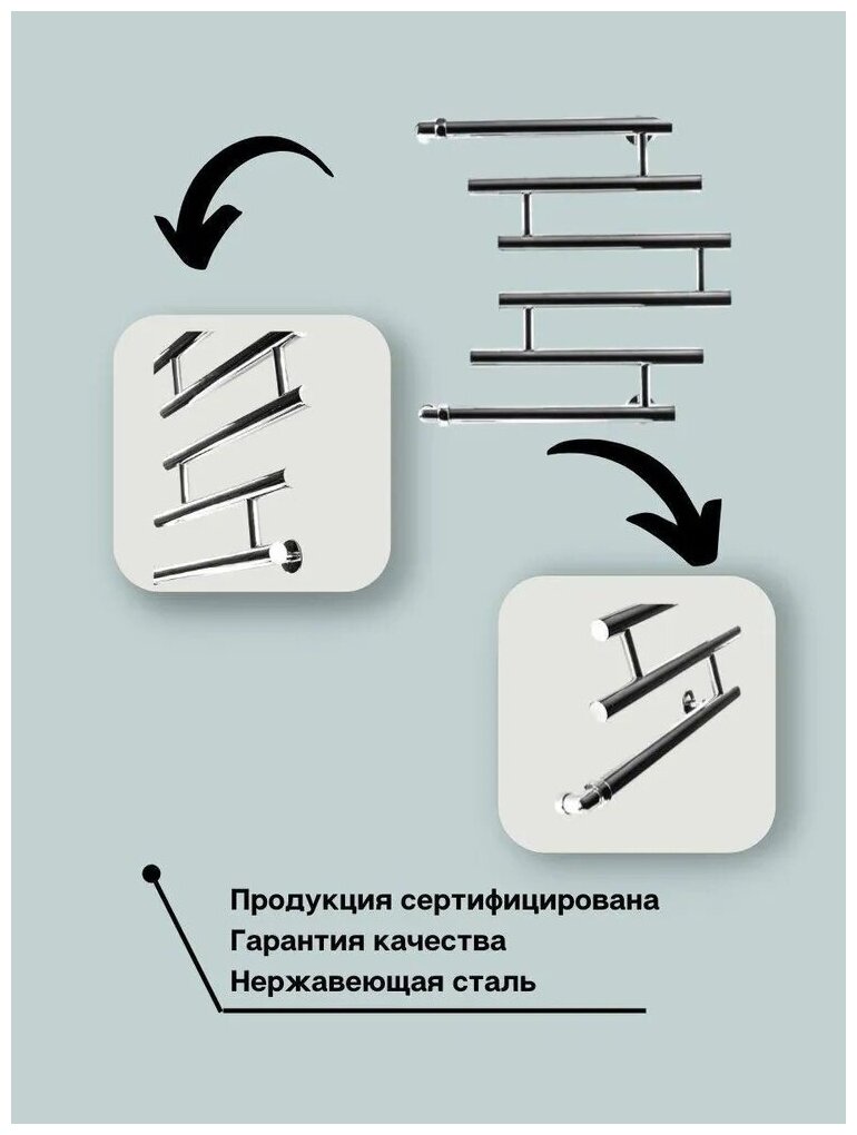 Лучшие цены. Поверхность полотенцесушителя имеет зеркальный блеск. Зеркальная поверхность добивается путем полировки нержавеющей стали ручным способом поэтому поверхность никогда не потеряет свой первоначальный вид. Основные характеристики: Толщина стенки: 2,2 мм; Высота прибора: 530 мм; Ширина прибора: 700 мм; Расстояние между осями: 500 мм; Рабочее давление: 8 атм; Давление при испытаниях: 20 атм; Материал: сталь нержавеющая; внимание! Полотенцесушитель поставляется без фитингов, т. к. Магазины в вашем городе.