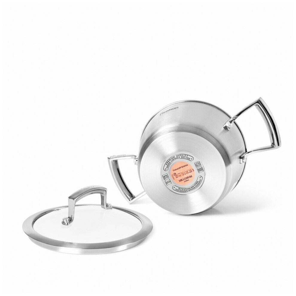 Лучшие цены. Компания FISSMAN ценит своих покупателей и относится к качеству своей продукции с особым вниманием. Посуда серии MILLENIUM сделана из самой безопасной высококачественной нержавеющей стали марки 18/10 (INOX304), обладает жаростойкостью и коррозийной прочностью, очень легка в уходе. Многослойное капсульное дно обеспечивает равномерный нагрев и распределение тепла благодаря алюминиевой прослойке, раскрывая вкусовые качества блюда и сохраняя все полезные свойства продуктов, а индукционный слой делает посуду. Магазины в вашем городе.