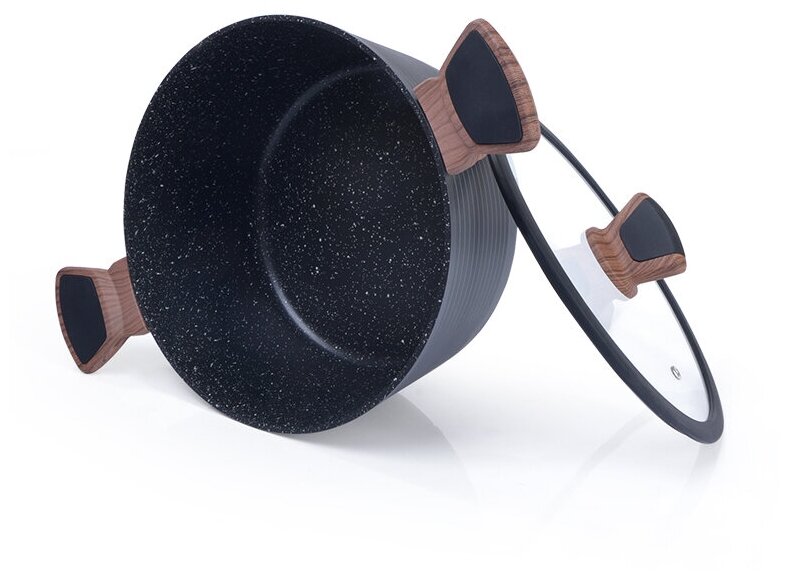 4304 FISSMAN Кастрюля DIAMOND 24x12см / 4,5л с крышкой (алюминий с антипригарным покрытием Greblon C3+) Ручки-бакелит с покрытием «софт тач»; Крышка-стекло; Индукция