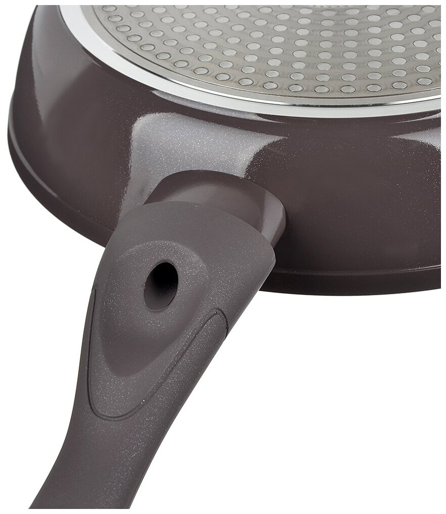 Лучшие цены. Сковорода классическая SATOSHI Валькур диаметром 22 см изготовлена из высококачественного литого алюминия с антипригарным покрытием под мрамор. Все это способствует быстрому и равномерному нагреву. Пища не прилипает к стенкам посуды, на ней можно готовить с минимальным добавлением масла и жиров. Эргономичная ручка сковородки выполнена из бакелита с силиконовым напылением, благодаря чему ручка не нагревается и не скользит. Сковороду домашнюю можно мыть в посудомоечной машине. Магазины в вашем городе.