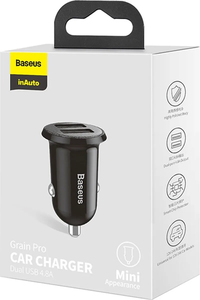 Автомобильное зарядное устройство BASEUS Grain Pro, 2USB, 4.8A, черный