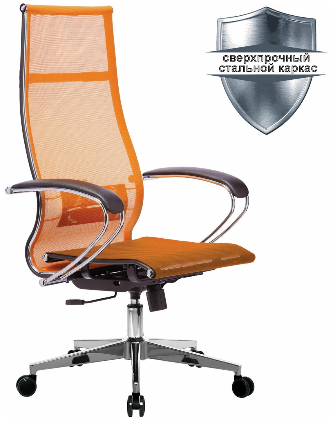 Компьютерные кресла Кресло офисное метта К-7 532465 хром, прочная сетка, сиденье и спинка регулируемые, оранжевое.