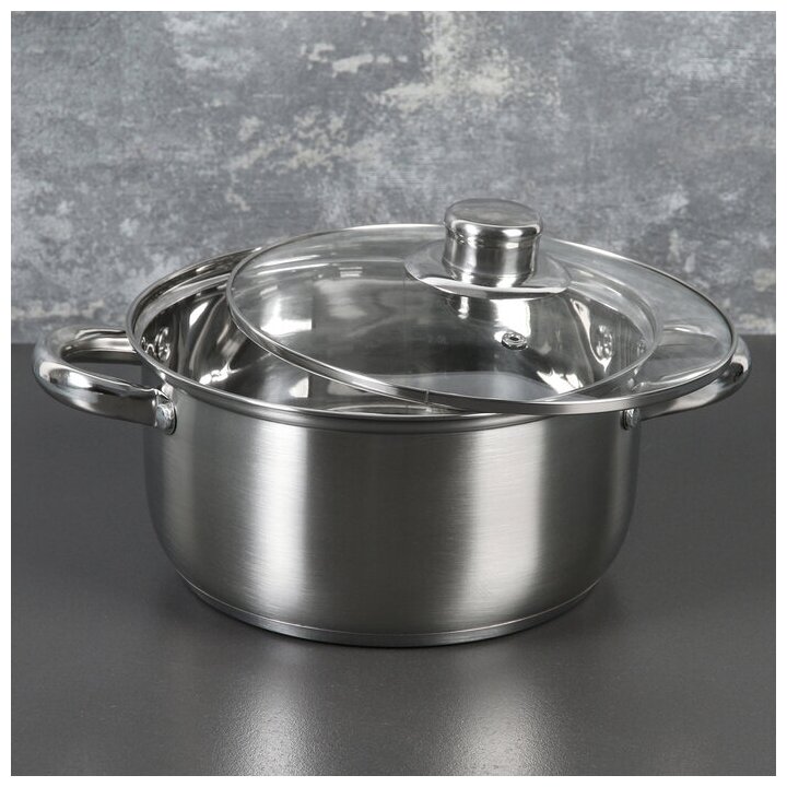 Кастрюля из нержавеющей стали Доляна «Гретте», 3,2 л, d=20 см, стеклянная крышка, капсульное дно, индукция