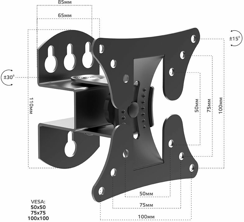 Harper TVF-3 Наклонно-поворотный кронштейн для телевизора. Vesa max: до 100х100; Подходит для телев