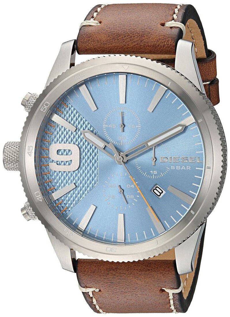 Лучшие цены. Diesel DZ4443 – очень стильные и функциональные мужские часы. В их основе лежит точный кварцевый механизм. Водонепроницаемый корпус изготовлен из нержавеющей стали, а ремешок – из натуральной кожи. В этих часах есть весь необходимый набор функций, начиная с секундомера и хронографа, заканчивая индикатором текущего числа и люминесцентной подсветкой стрелок. Магазины в вашем городе.