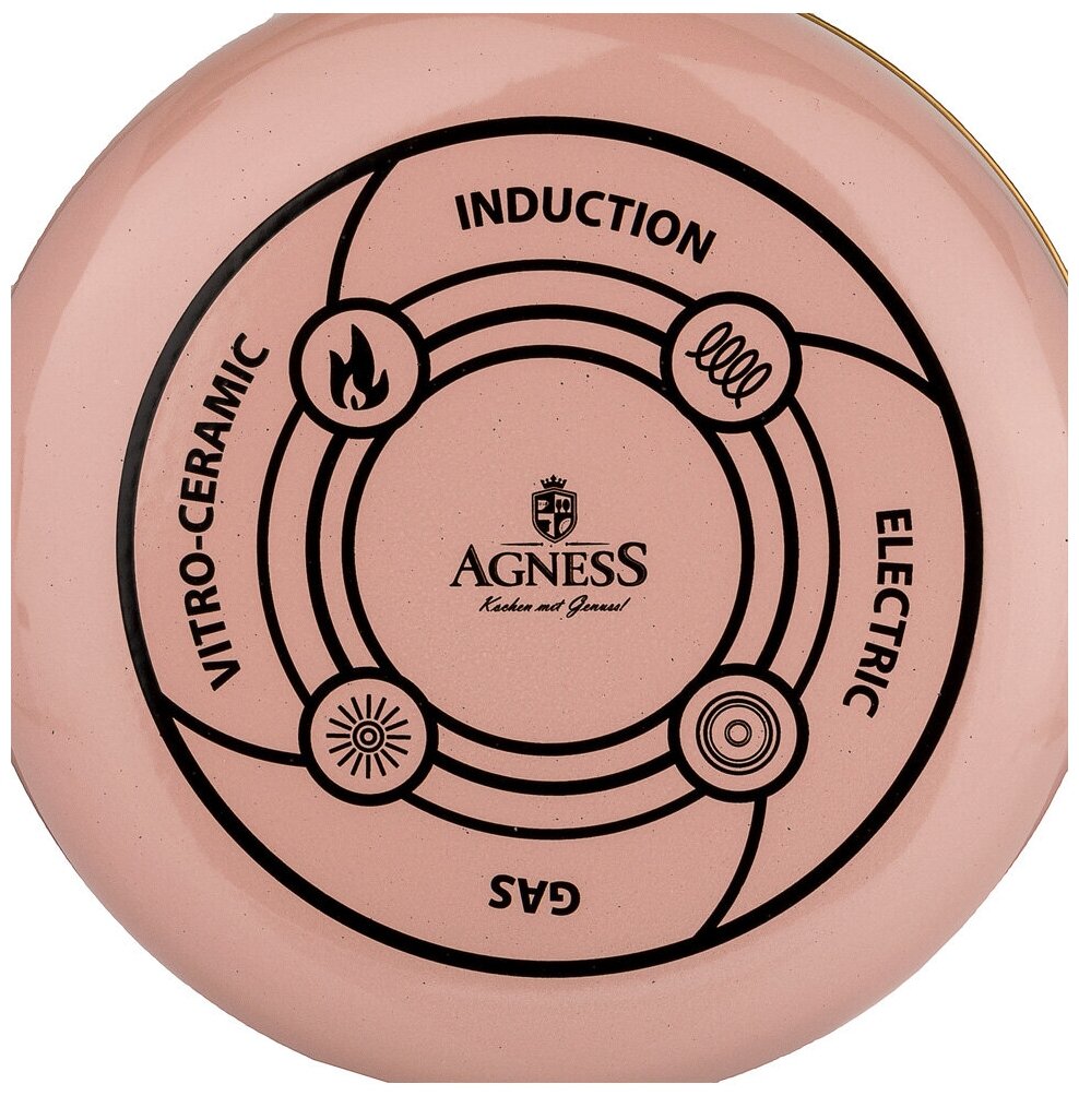 Кастрюля эмалированная Agness 24см / 5,3л, антипригарная, индукция, пудрово-розовый (950-273)