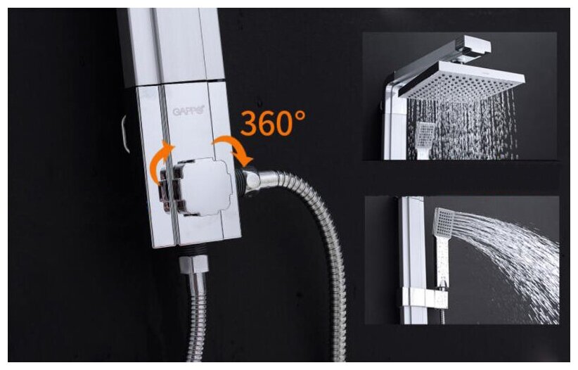 Лучшие цены. Современная душевая система с верхним душем Gappo G2401 идеально подходит для установки в душевых углах и кабинах, а так же в ваннах. Поворотный переключатель с тропического душа на душевую лейку производится поворотом, а так же в комплекте душевой шланг и шланг для подключения к смесителю. Магазины в вашем городе.