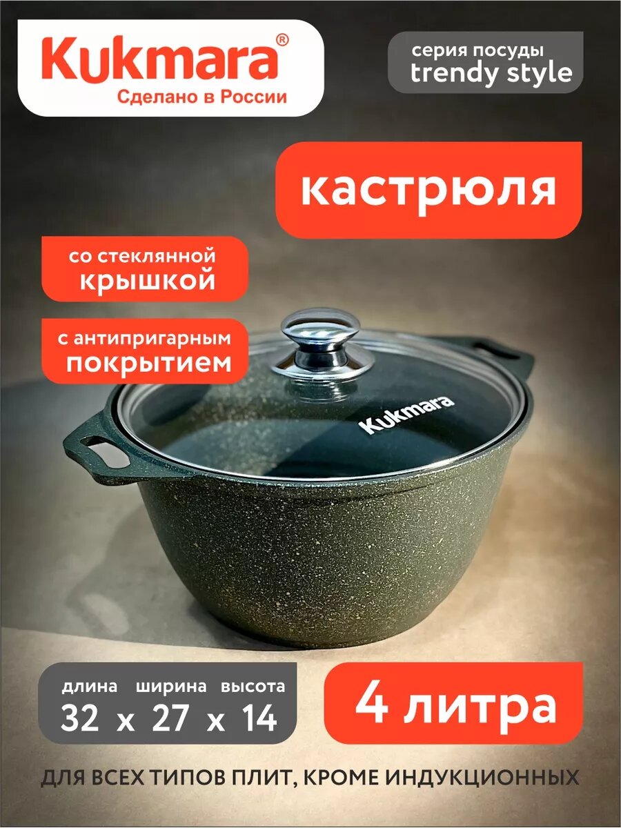 Кастрюли Кастрюля Kukmara 4л со стеклянной крышкой Trendy style malachite (к41tsml)