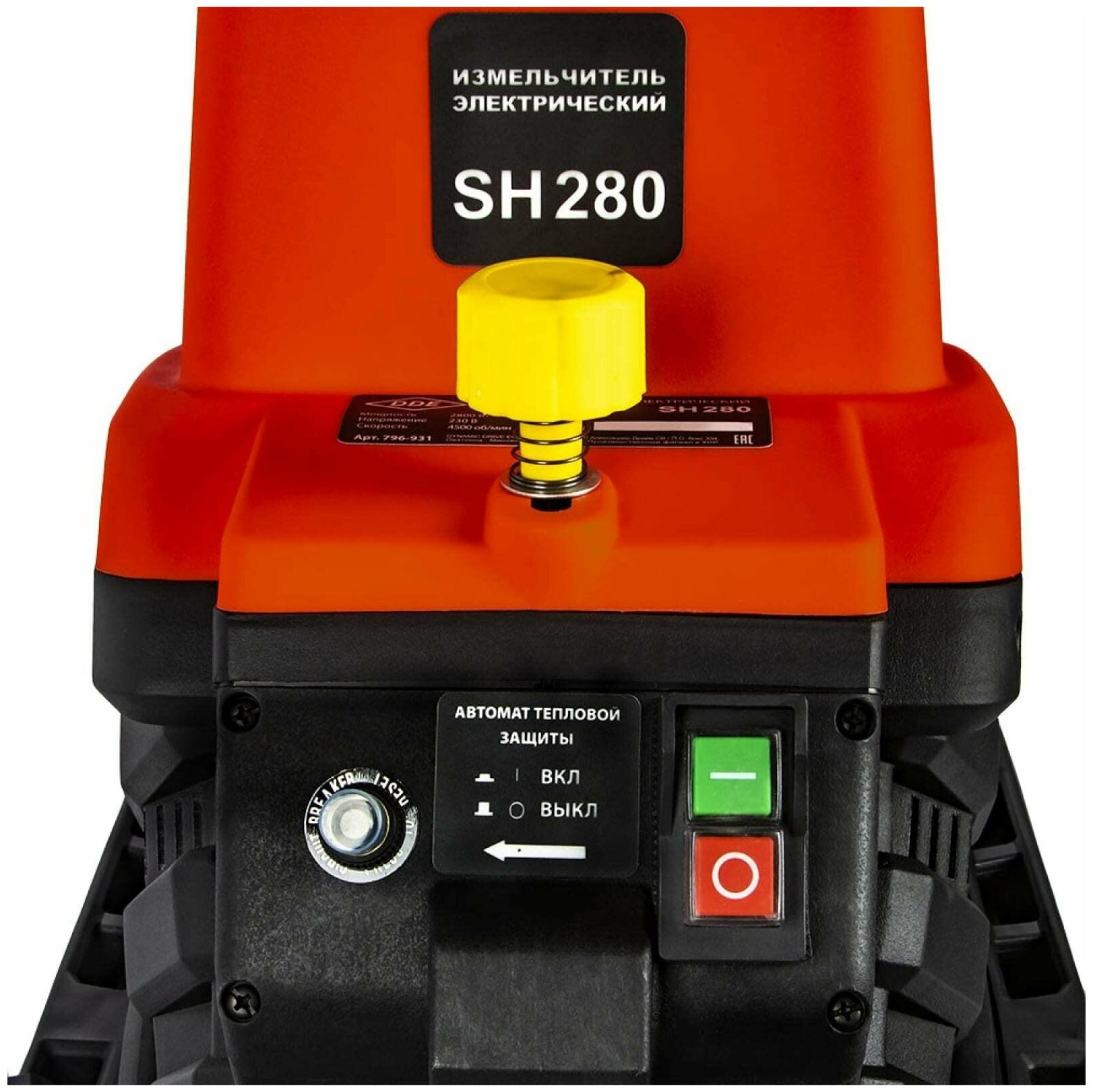 Измельчитель садовый DDE SH 280 электрический, 2.8 кВт, 4500 об/мин, для веток до 45мм, арт. 796-948